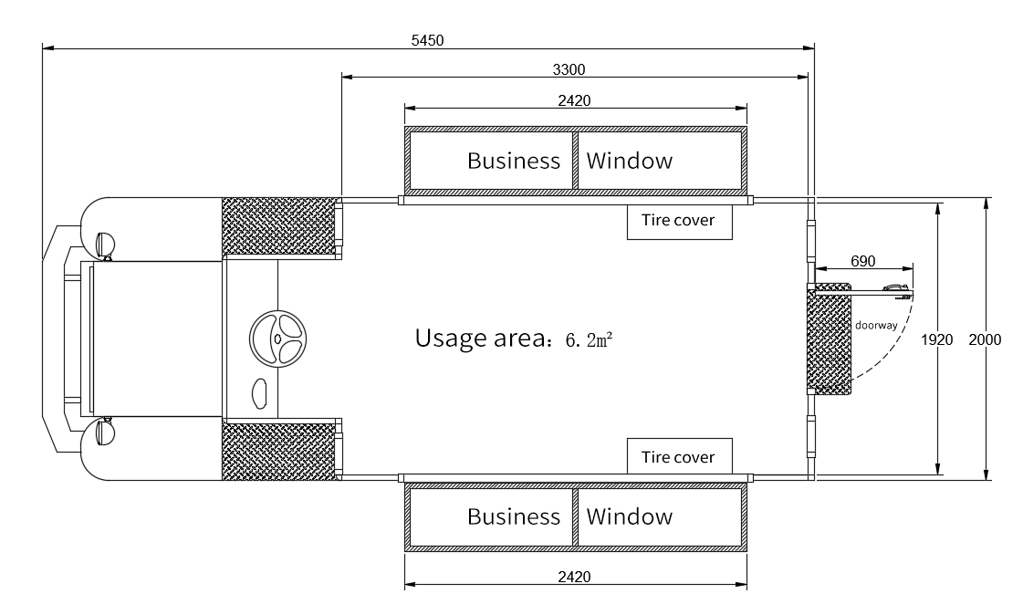 镀锌钢管框架、金属雕花外墙保温板、PVC内墙装饰板、万向轮、装饰轮胎、外接电源接口、照明灯管、插座、开关